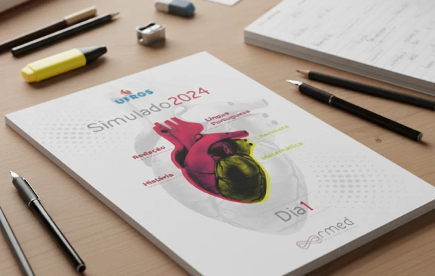 Aqui, treino é coisa séria. São simulados inéditos no formato ENEM, UFRGS, PUCRS e UFSC — com correção TRI, boletim de desempenho e comentários em vídeo dos professores. Você entende seus erros, corrige a rota e chega no vestibular com confiança de quem já fez o caminho.